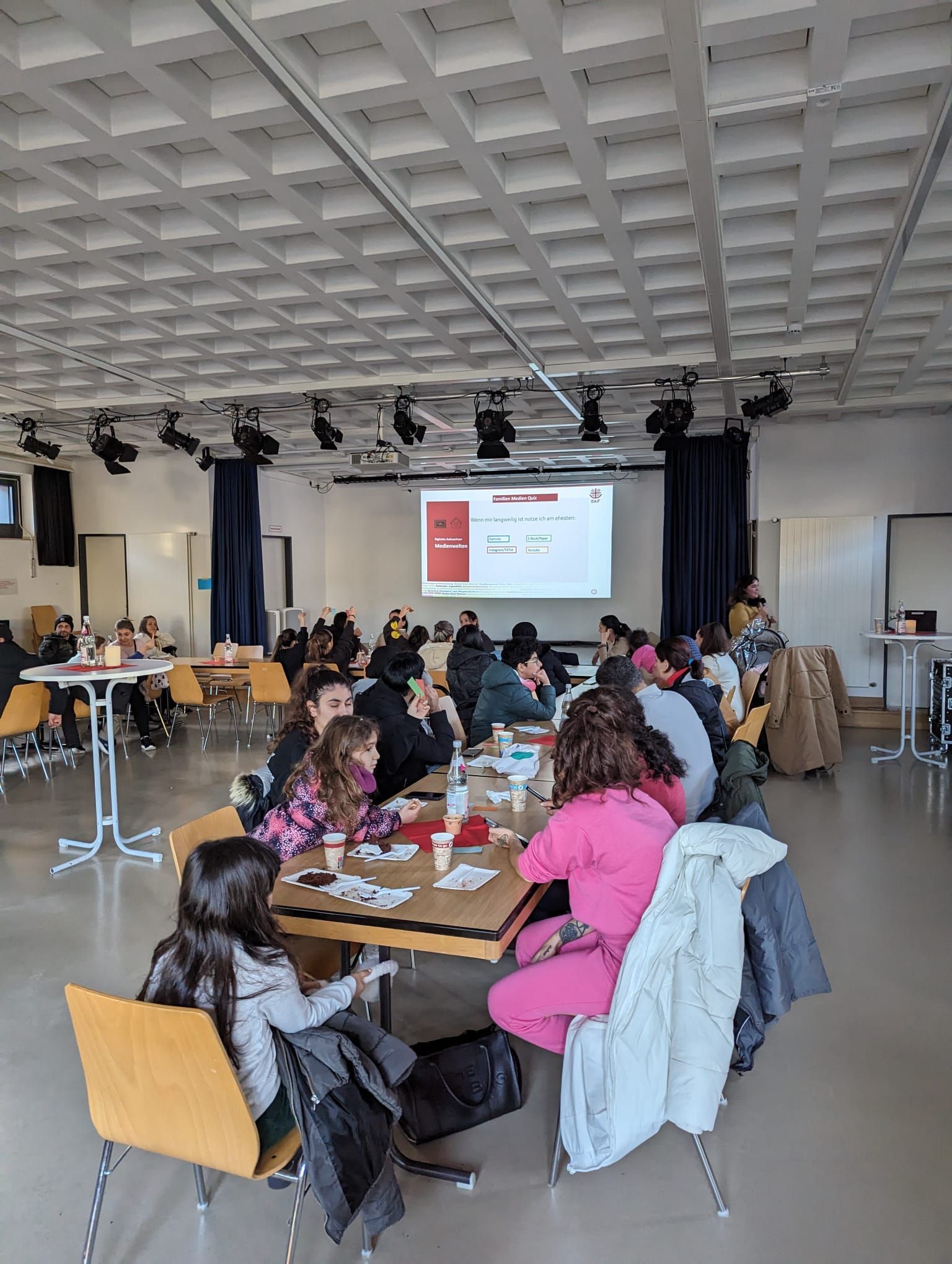 Unser diesjähriges Adventscafé für die Eltern in der Aula war wieder gut besucht! Bei leckeren Keksen, Kuchen und Kaffee konnten wir in gemütlicher Runde ins Gespräch kommen. Zusätzlich gab es einen Vortrag zum Thema "Mediennutzung".