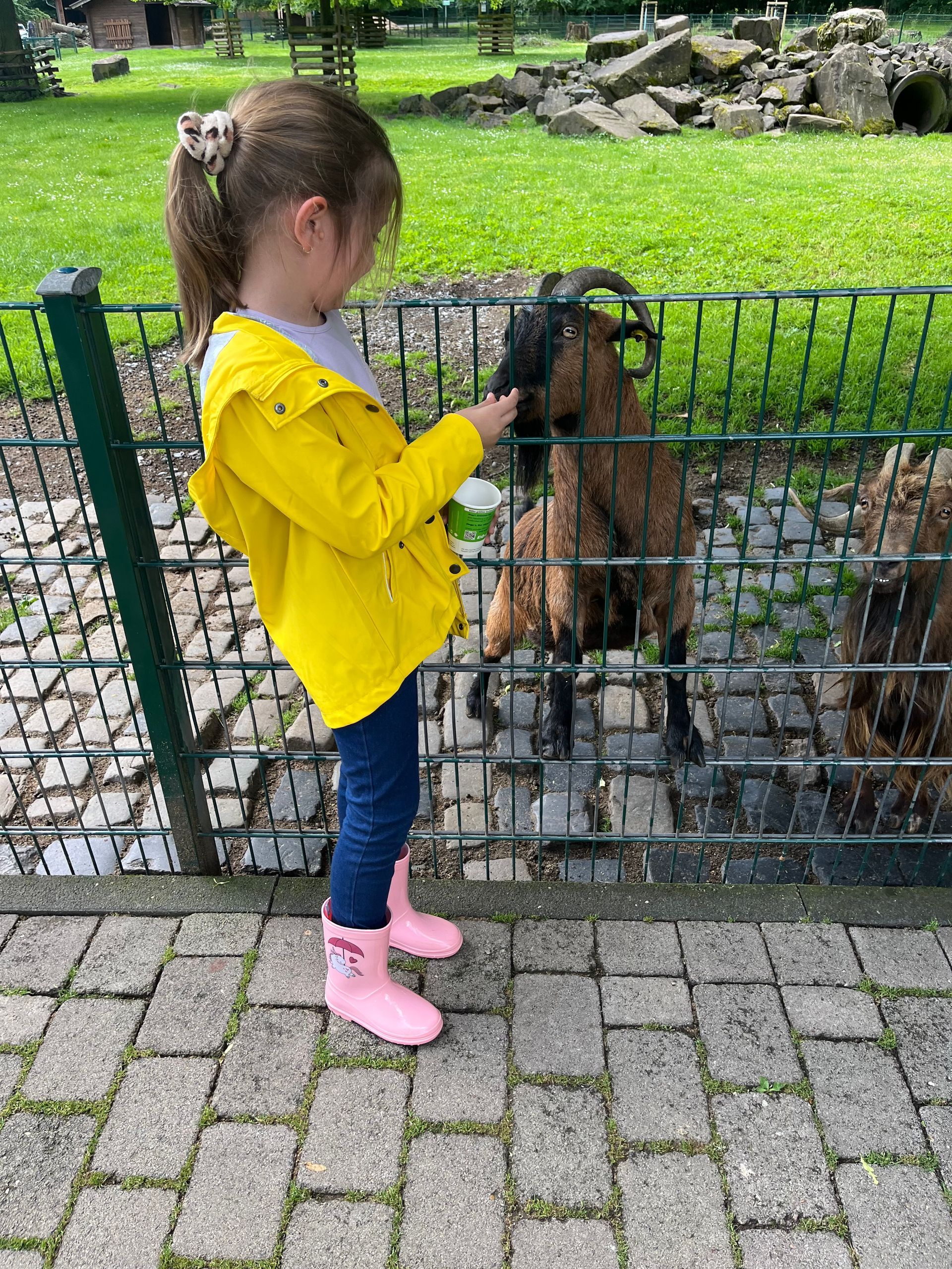 Nach einer aufregenden Bahnfahrt erwartete uns Petra bereits an der Bahnstation. Sie zeigte uns im Stadtgarten eine alte Heilpflanze, den Spitzwegerich, und verriet uns, wie die Menschen diese Pflanze früher bei Verletzungen benutzten. Nachdem wir uns auf die Suche nach den kleinen Blättern von Gänseblümchen, der Leibspeise der Gänse, gemacht hatten, liefen wir bis in den Lindenthaler Tierpark, wo wir ausgiebig frühstückten. Anschließend blieb viel Zeit, um die Ziegen, Hühner und Schafe kennenzulernen. Petra brachte uns außerdem Wolle der Schafe und einen Teil eines Hirsch-Geweihs mit, welches der Hirsch einmal im Jahr abwirft. Die Tiere freuten sich besonders über das Futter, mit dem die Koalas nicht geizten. Zum Abschluss des Tages schlug der Pfau noch ein Rad für die Koala-Klasse, sodass alle Kinder am liebsten bereits nächste Woche wieder kommen wollen.