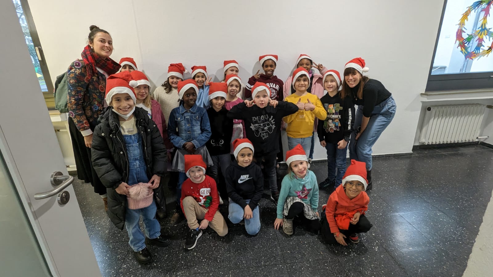 Das Kinderparlament lief mit Weihnachtsmusik und Nikolausmützen ausgestattet durch alle Klassen und überreichte jedem Kind einen Schokonikolaus, Nüsse und ein Foto der Klassentiere der Lukas-Schule!